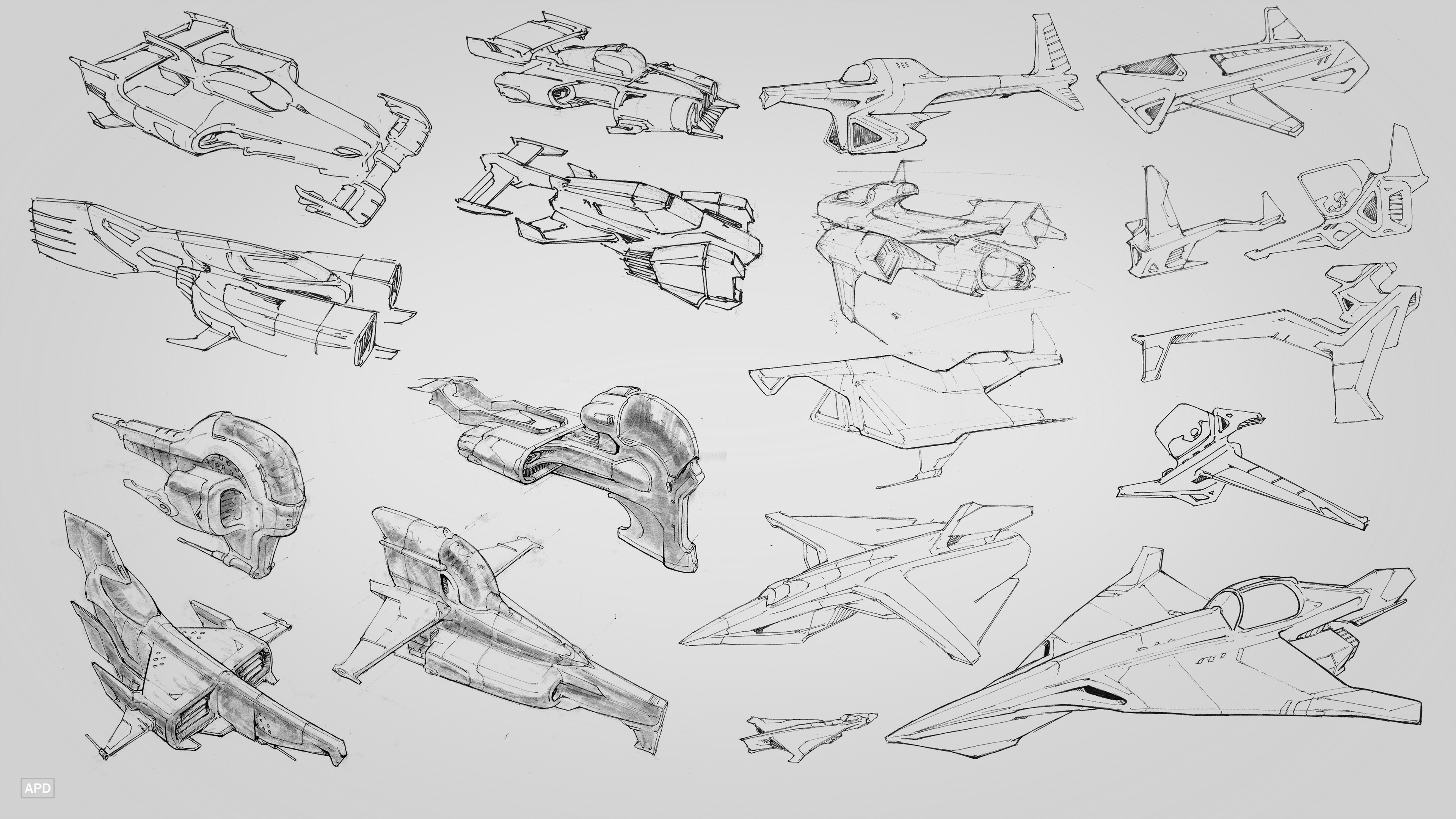 Collection of spaceship sketches and doodles created for no particular project during 2025